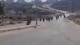 Rebellsoldat firar utanför brinnande militärdomstol.