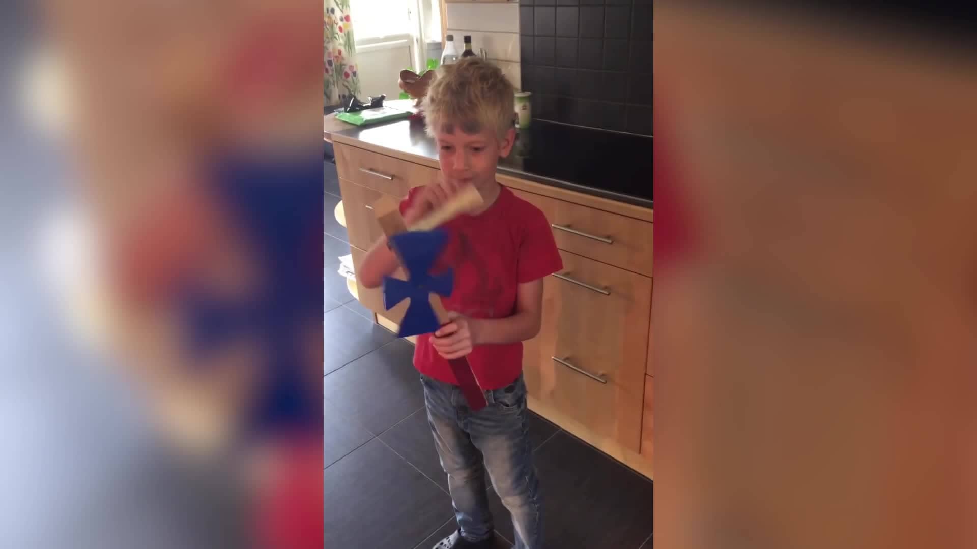 Efter en stund får hunden lämna Annas famn och hon reser sig för att visa båtarna och vindsnurran David byggde när han var liten, som står på en hylla i vardagsrummet.